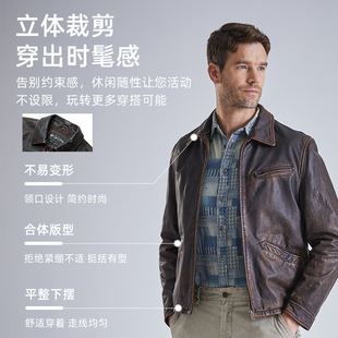 MCS男装 1930S真皮皮衣底特律做旧牛皮夹克外套男 源自万宝路经典