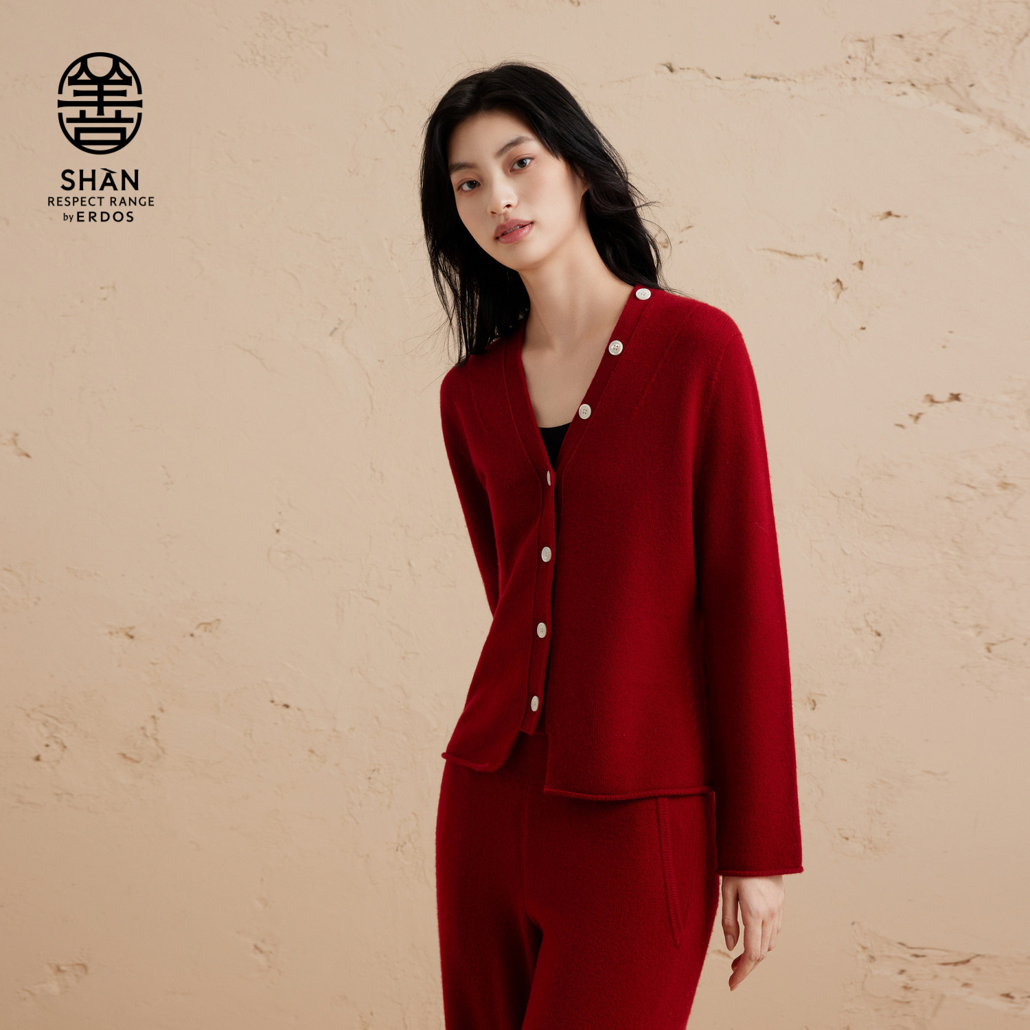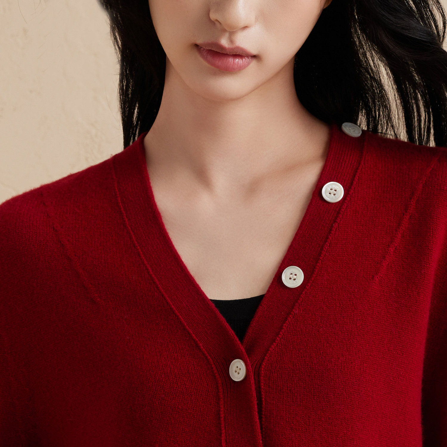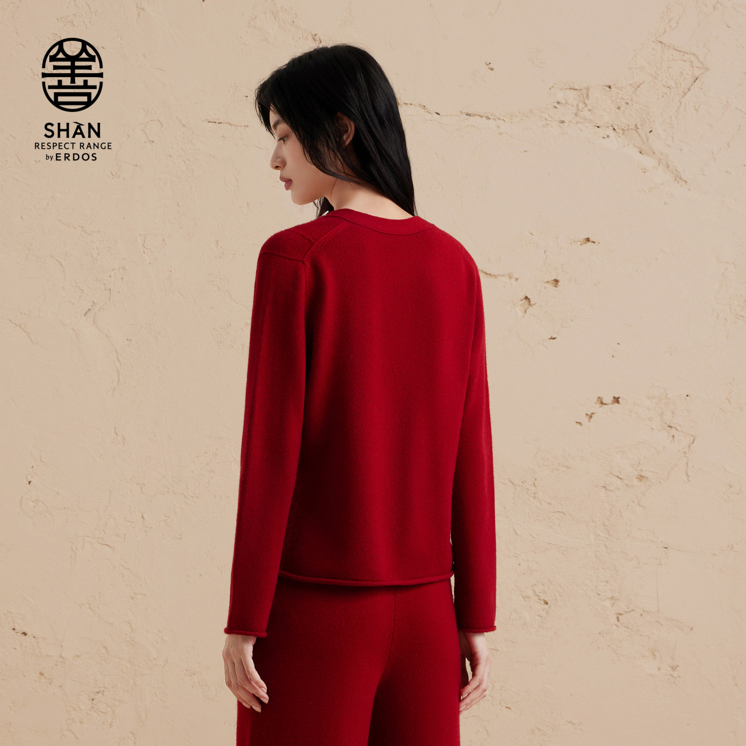 女秋冬通勤百搭套衫 V领纯羊绒针织衫 圆领 鄂尔多斯1980