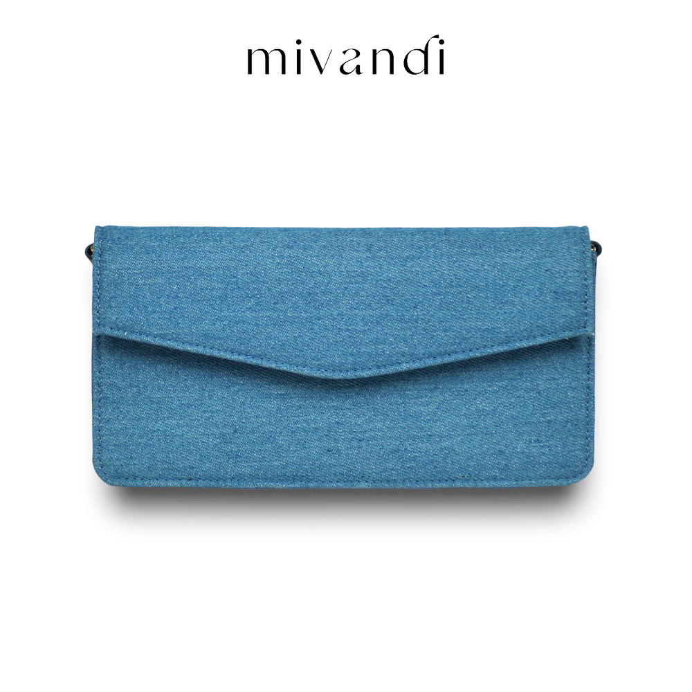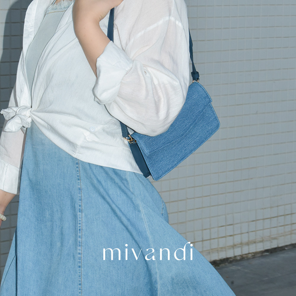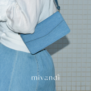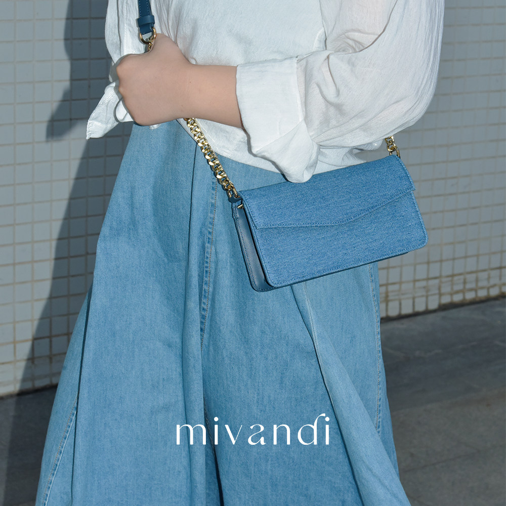 简约头层牛皮链条斜挎包 丹宁系列牛仔信封包时尚 MIVANDI 2024新款