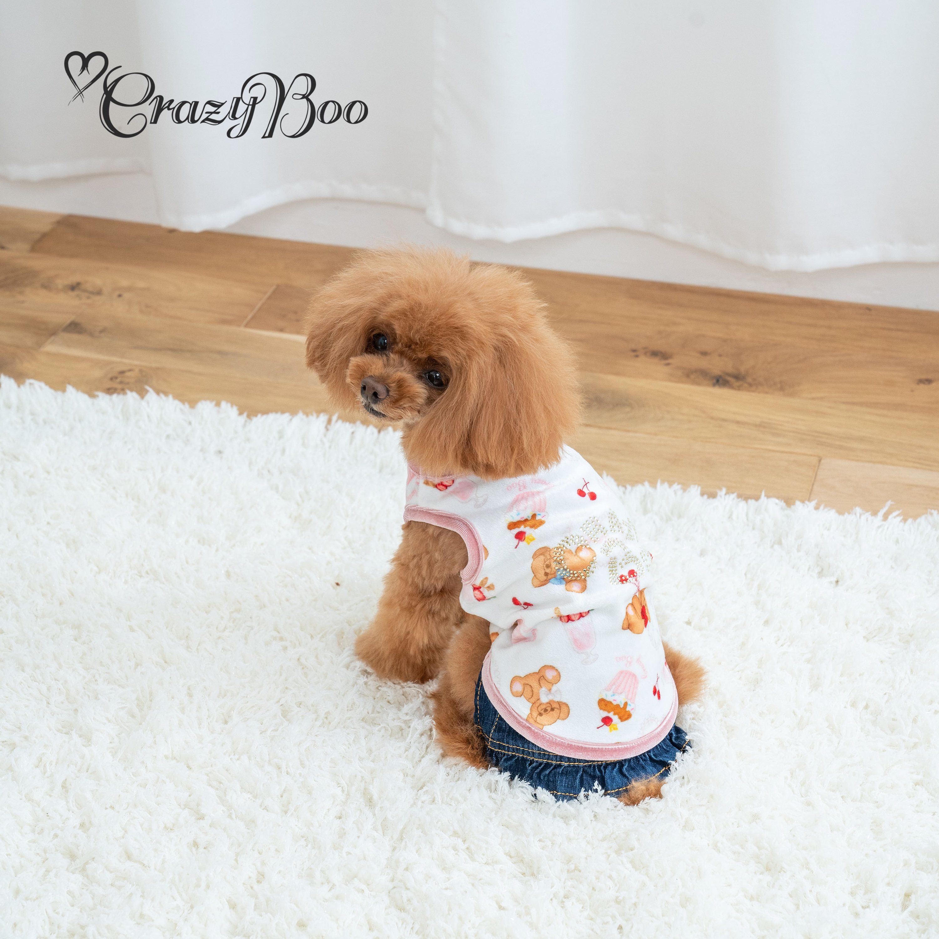 可吉步Crazy 小熊甜品图案背心可爱烫钻柔软质地 Boo日本品牌宠服