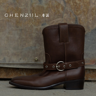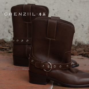 靴皮靴 时装 吴宣仪天美意千金靴复古厚底骑士靴加绒长靴女鞋 子新款