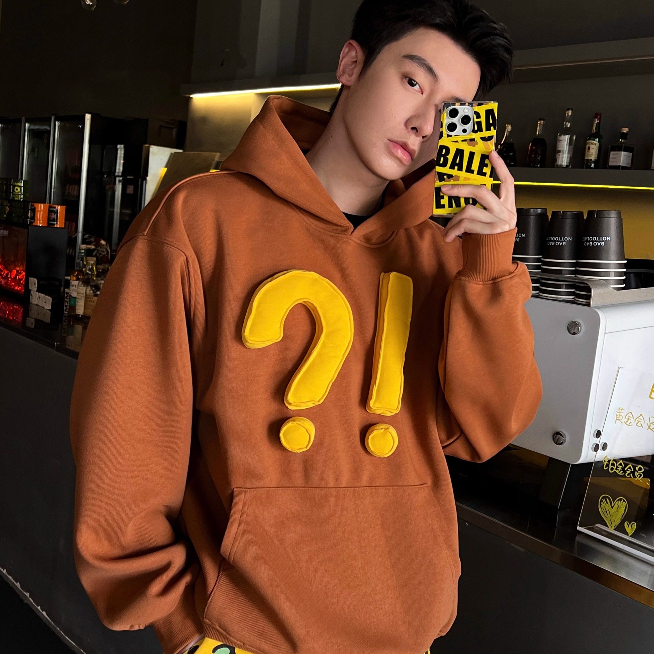 情侣装 获衣局 休闲男女款 问号宽松美式 连帽卫衣 原创设计立体惊叹