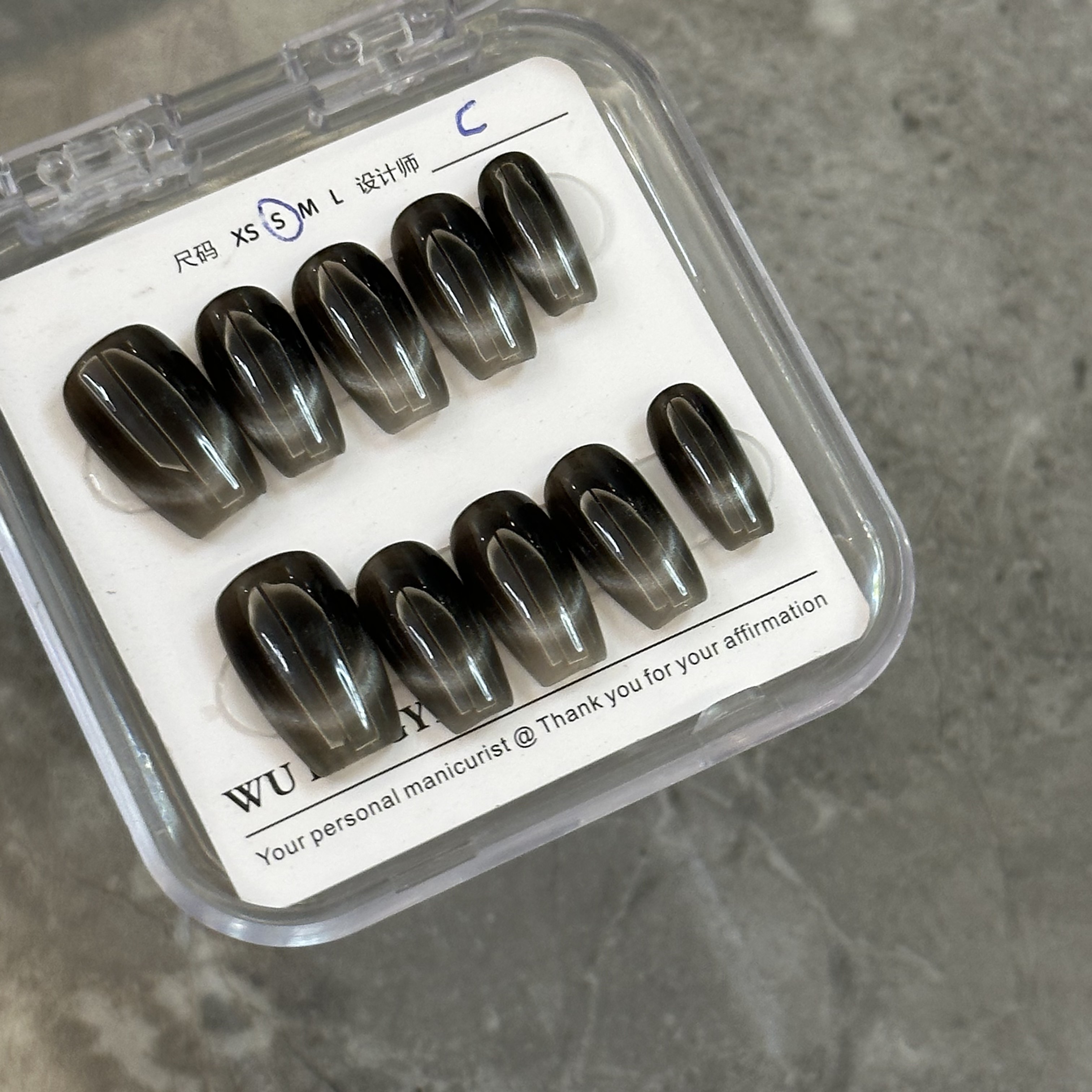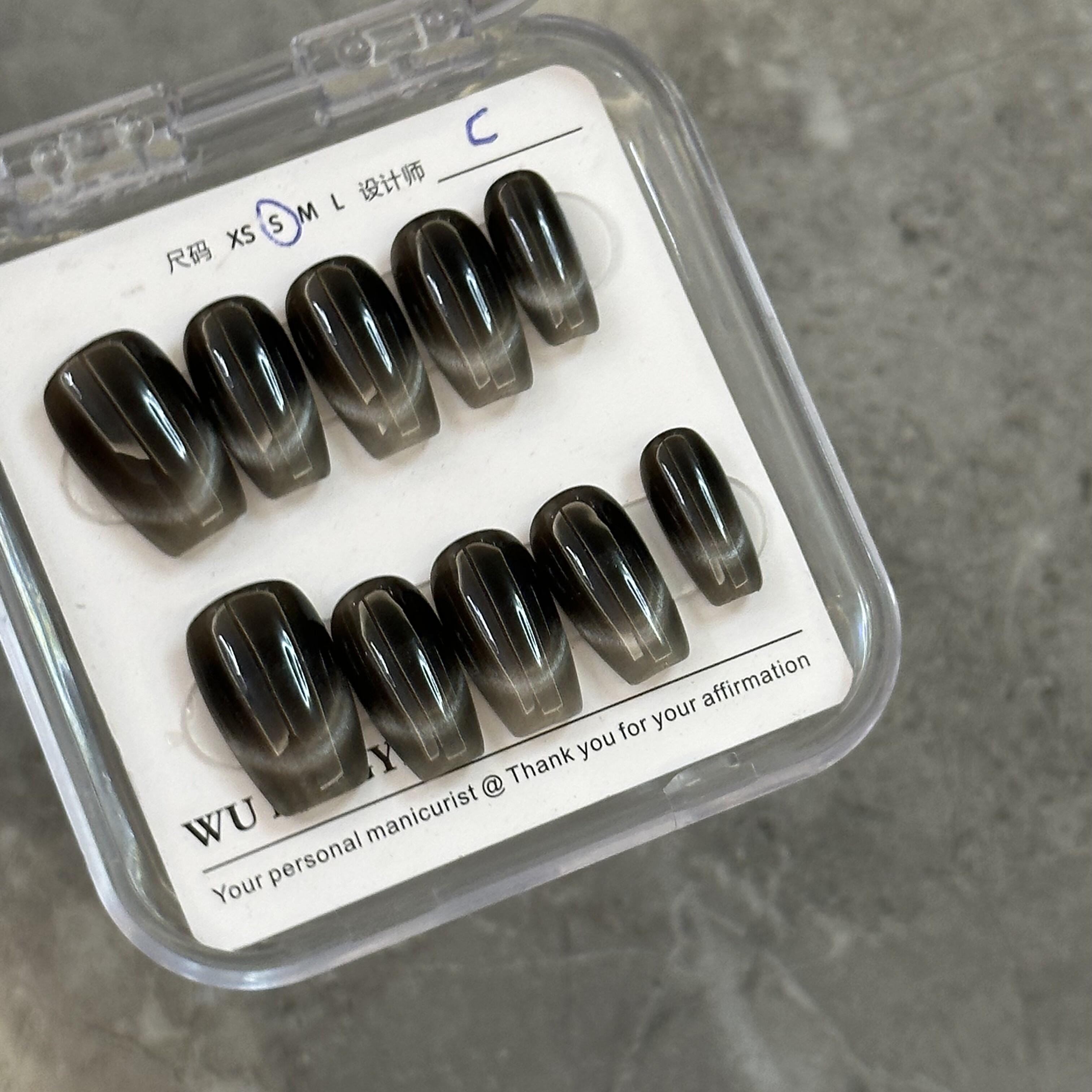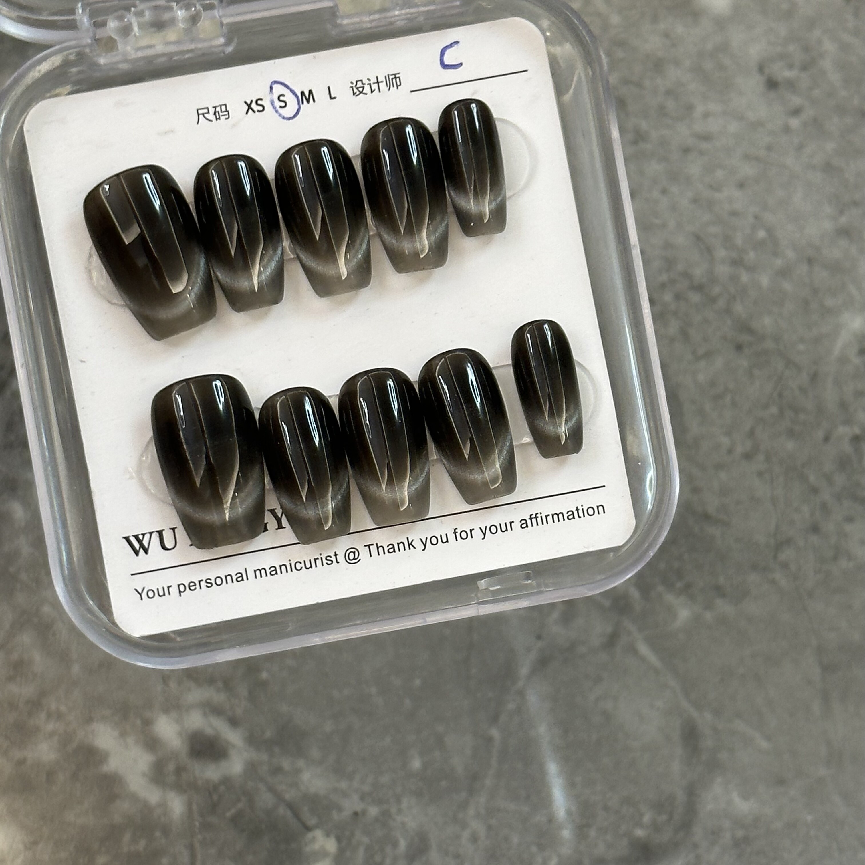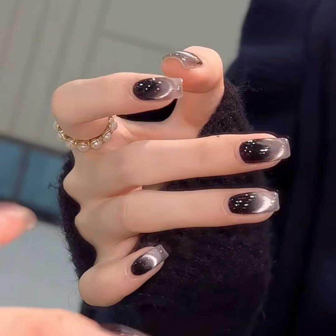 气质高级感穿戴甲纯黑猫眼甜酷辣妹风超酷手工穿戴甲2024黑色系