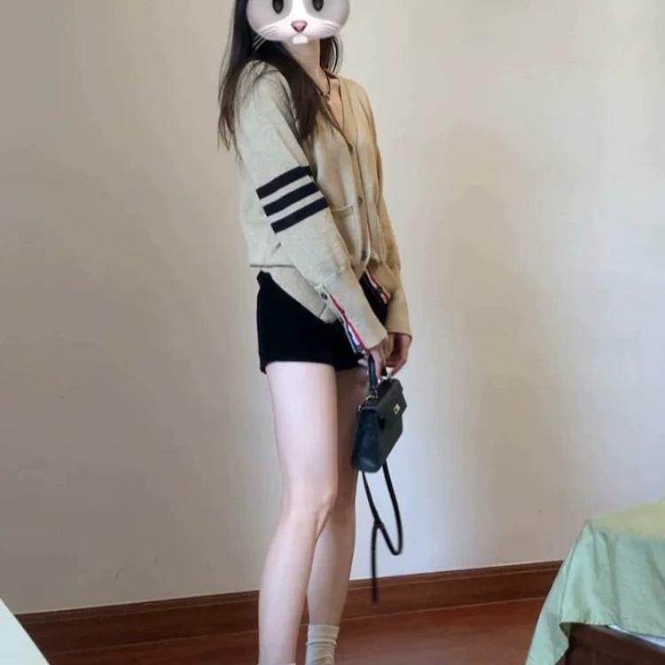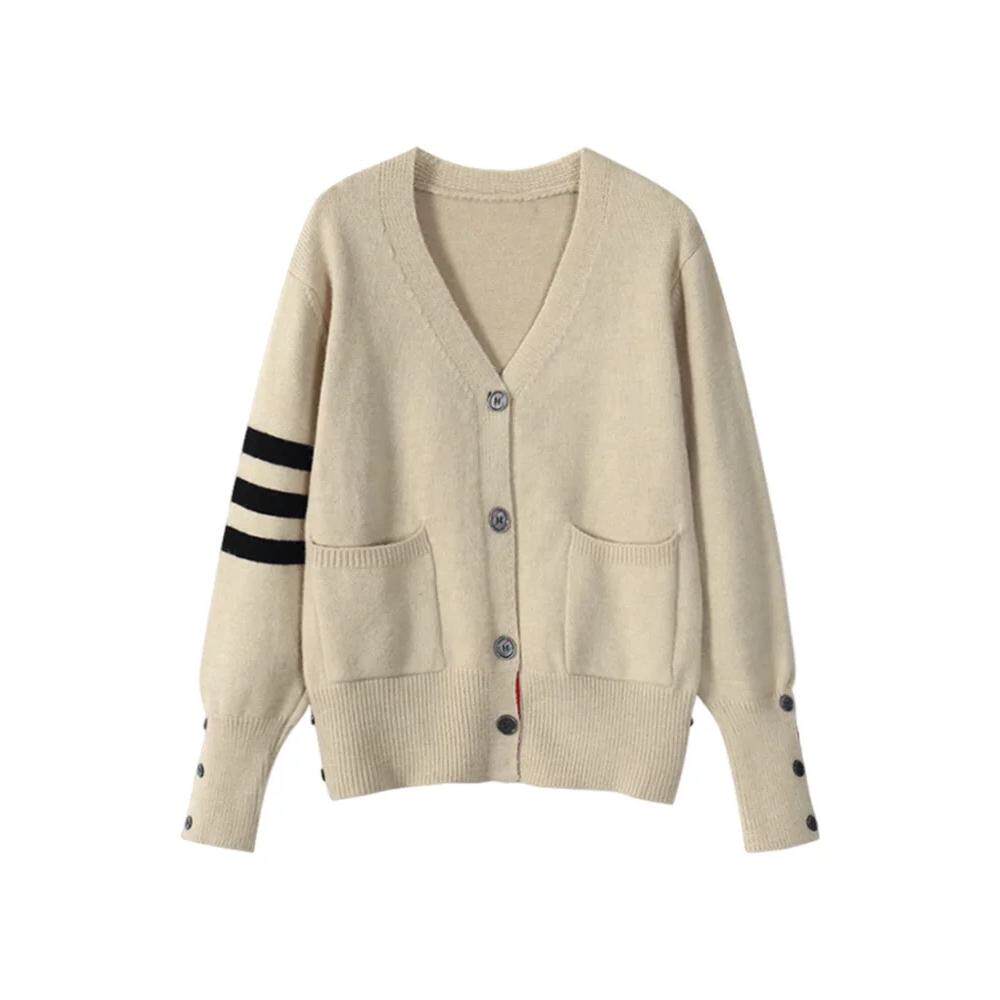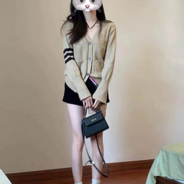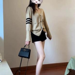 上衣 复古软糯学院风针织开衫 大码 胖mm撞色v领毛衣外套女春秋新款