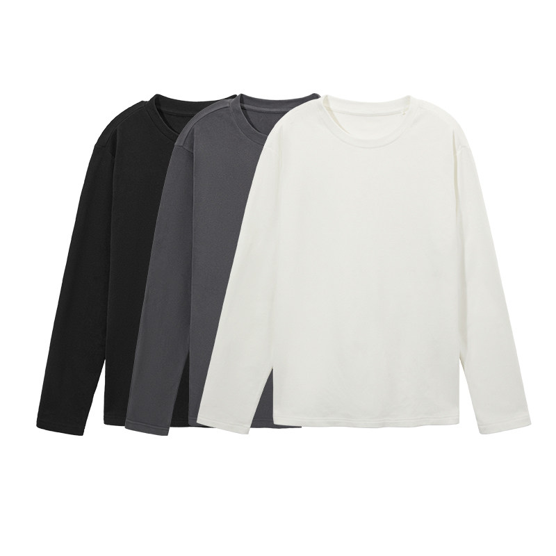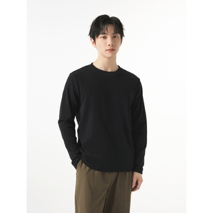 时尚 男士 基本圆领长T恤宽松舒适纯色上衣 2025年冬款 热风男装