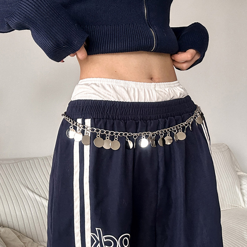 金属感硬币流苏装 带 饰腰链女民族风小众潮流腰带百搭辣妹可调节裤