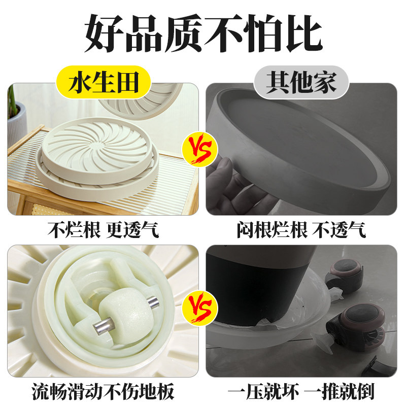 移动花盆托盘底座带轮接水盘盆栽底托万向轮圆型隐形滑轮塑料加厚