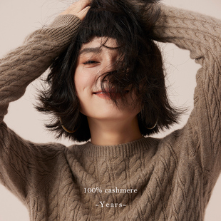 高级感上衣宽松打底针织衫 圆领100%纯山羊绒衫 女高端毛衣秋冬新款