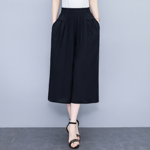 薄高腰垂感七分今年流行梧桐裤 女夏季 宽松显瘦 棉绸阔腿裤 2026新款
