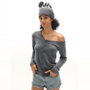 圆领100%纯山羊绒衫 灰色宽松打底上衣 女毛衣秋冬假两件拼色针织衫