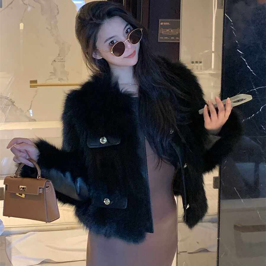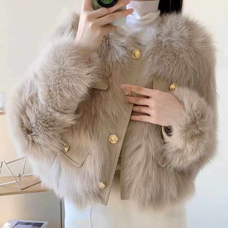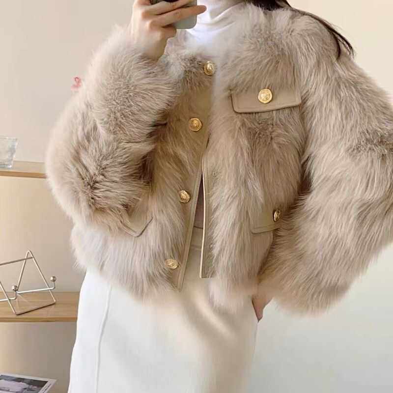 仿狐狸毛小香风外套女春秋冬款 皮毛一体皮草外套女 小个子加厚短款