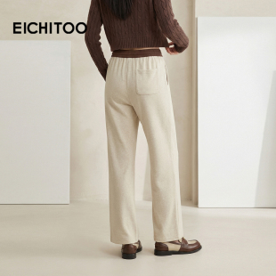 软糯舒适燕麦色休闲裤 爱居兔撞色哈伦裤 女秋季
