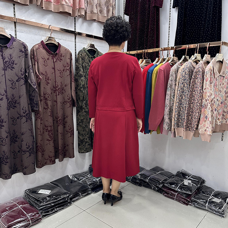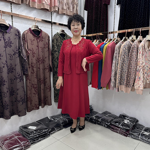 高档2024新款 气质洋气妈妈两件套显瘦 喜婆婆套裙秋冬小个子大码