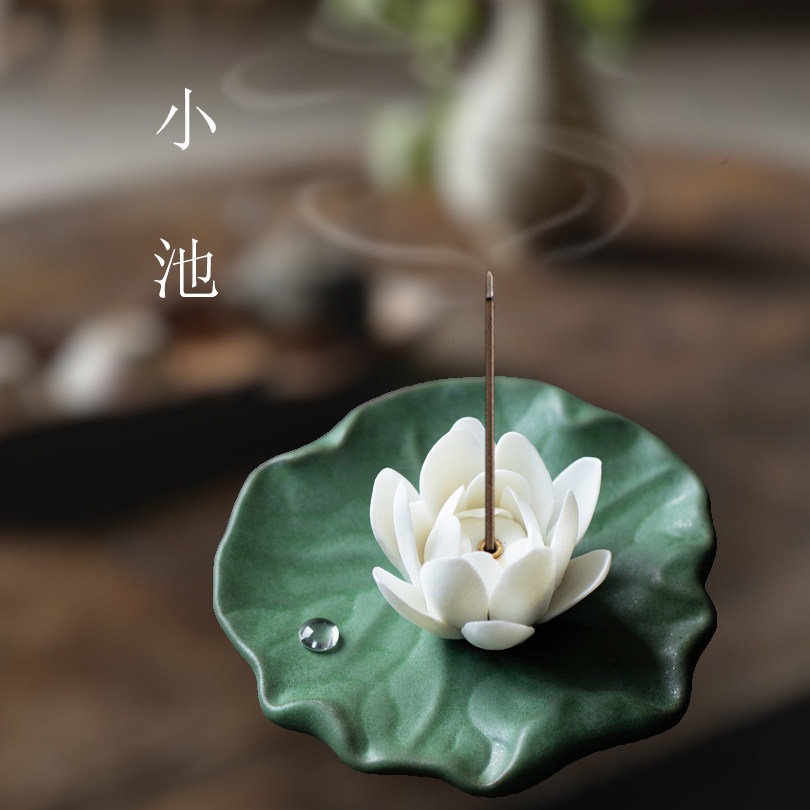 至檀世家 禅意简约线香插底座创意茶道香托高级感 陶瓷荷叶莲花