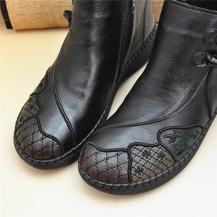 牛筋底复古短靴国风 冬季 老北京布鞋 女靴子中老年人妈妈二棉薄绒鞋