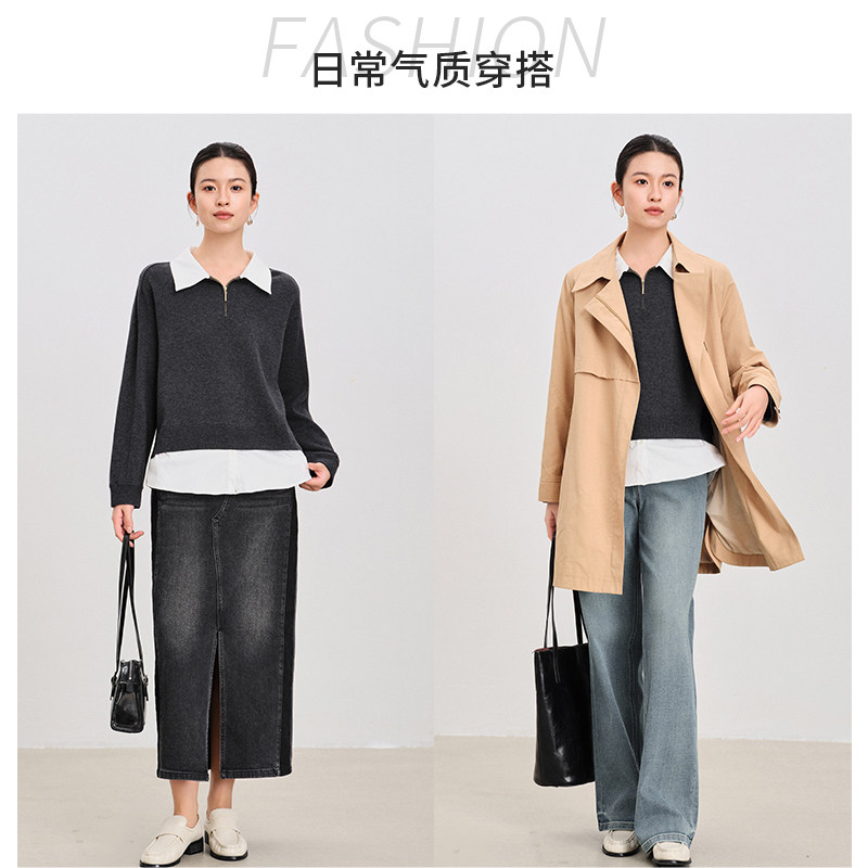 100%羊毛立领毛衣开衫 智性模式 女双拉链针织外套上衣 Lin Maven