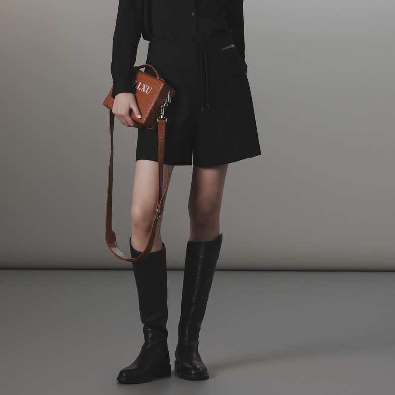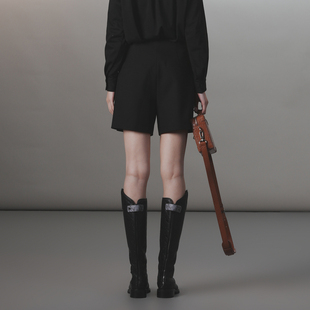 显瘦直筒裤 时尚 XJ402051A190 女2024冬新款 xg雪歌黑色休闲百搭短裤