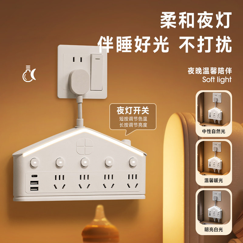 喜美诺排插插座面板多孔排插家用宿舍接线板插排国标线板延长线