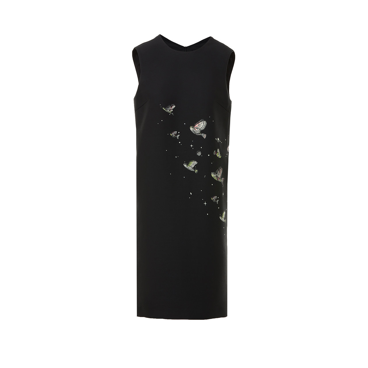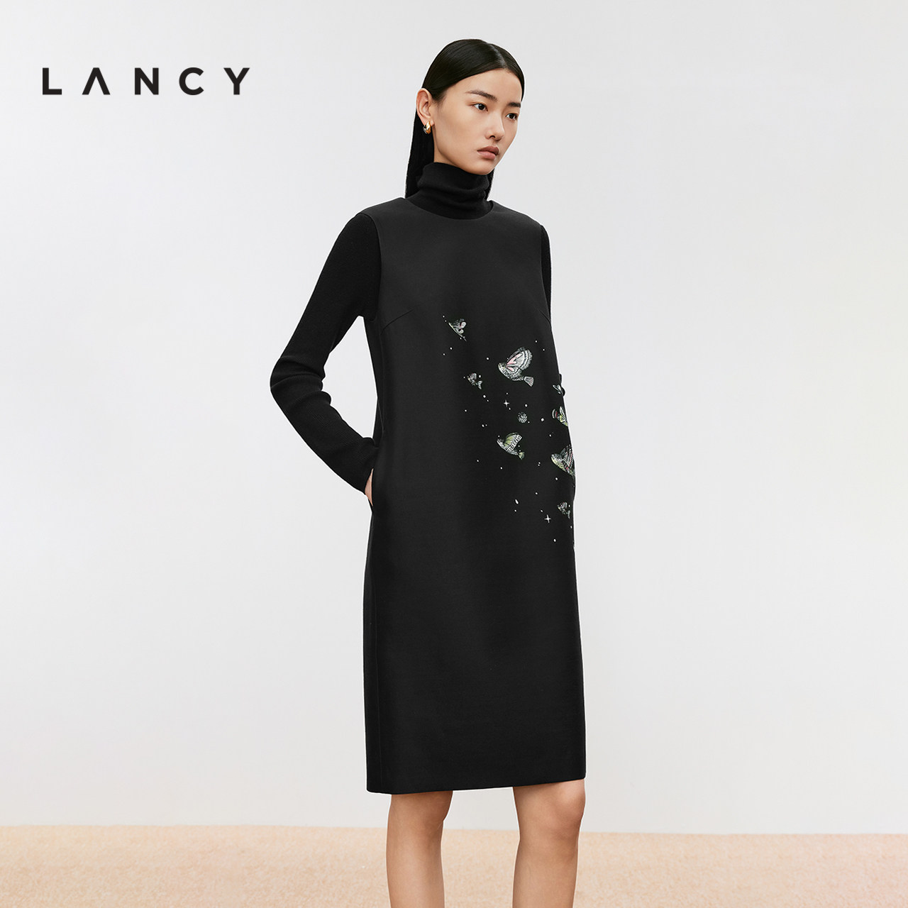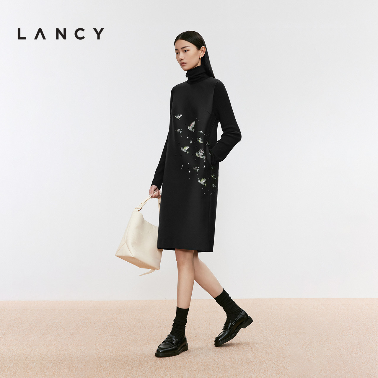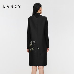 设计感印花高级感圆领连衣裙女 真丝羊毛无袖 LANCY 朗姿2024冬新款
