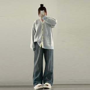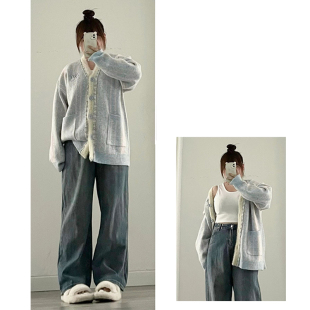 女装 子复古宽松显瘦直筒裤 可调节腰围阔腿牛仔裤 裤 女新款 胖mm大码