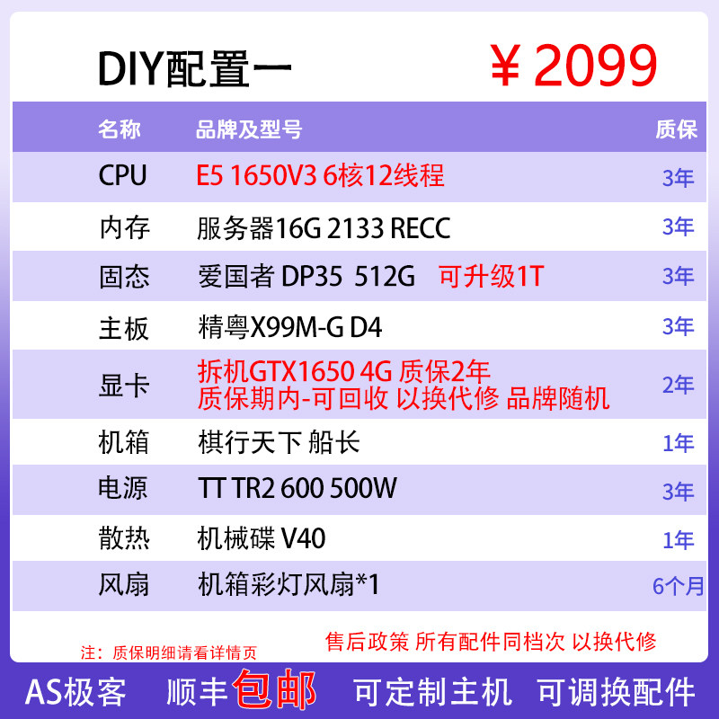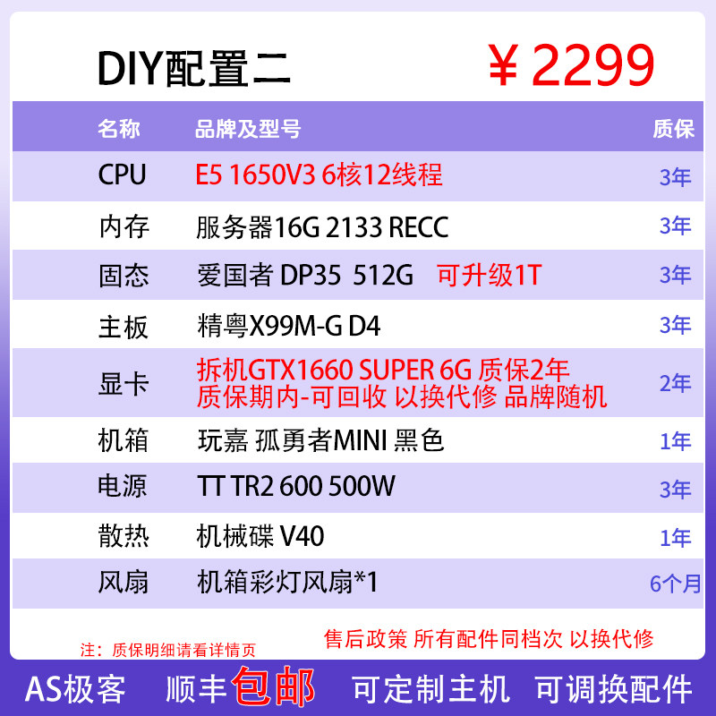 2500元 6G台式 GTX1060 1660S 电脑主机AS极客 过渡主机1500元