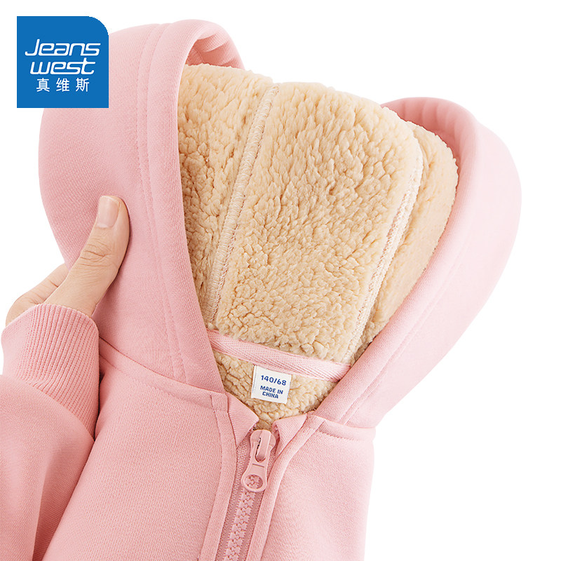 潮羊羔绒棉服儿童女孩冬装 真维斯女童外套秋冬款 加绒加厚2025新款