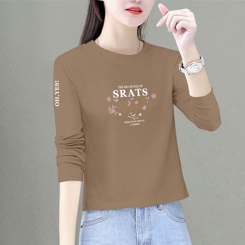 上衣洋气内搭打底衫 春季 t恤女宽松纯棉短款 休闲减龄长袖 2025新款