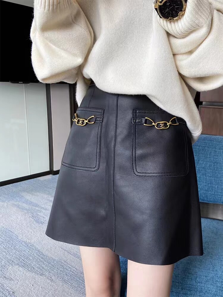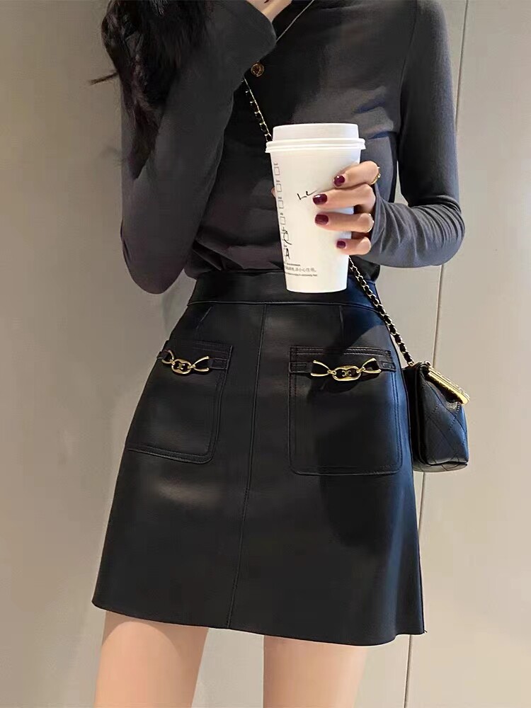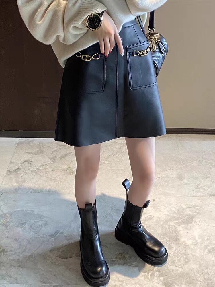 大码 显瘦高腰设计感a字短裙 胖妹妹黑色pu皮裙半身裙女春秋冬新款