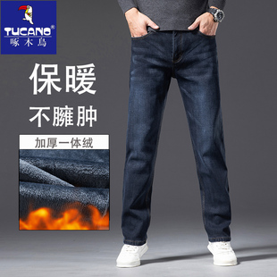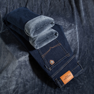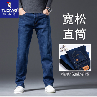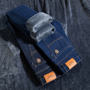 春秋款 宽松直筒中年商务休闲百搭加厚长裤 牛仔裤 金盾秋冬加绒男士