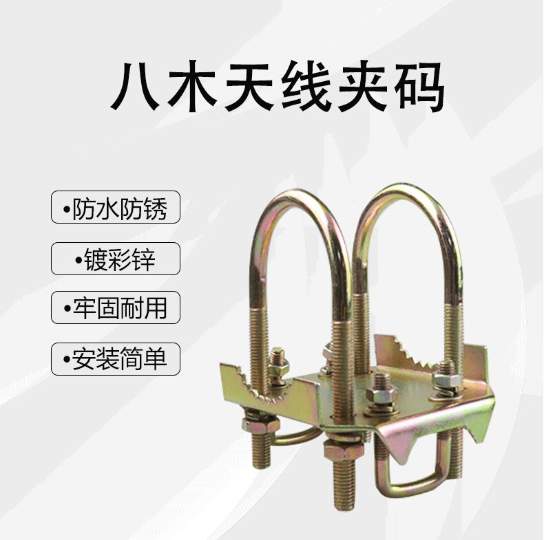 配件扣件八木天线加强型夹具夹码 夹具户外天线安装 镀彩锌 固定支架通用抱箍支架U型夹具抱杆夹子安装 天线夹码