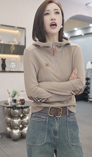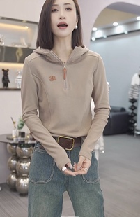 设计感高端带帽拉链双面德绒卫衣女2023秋冬新款 气质百搭打底上衣