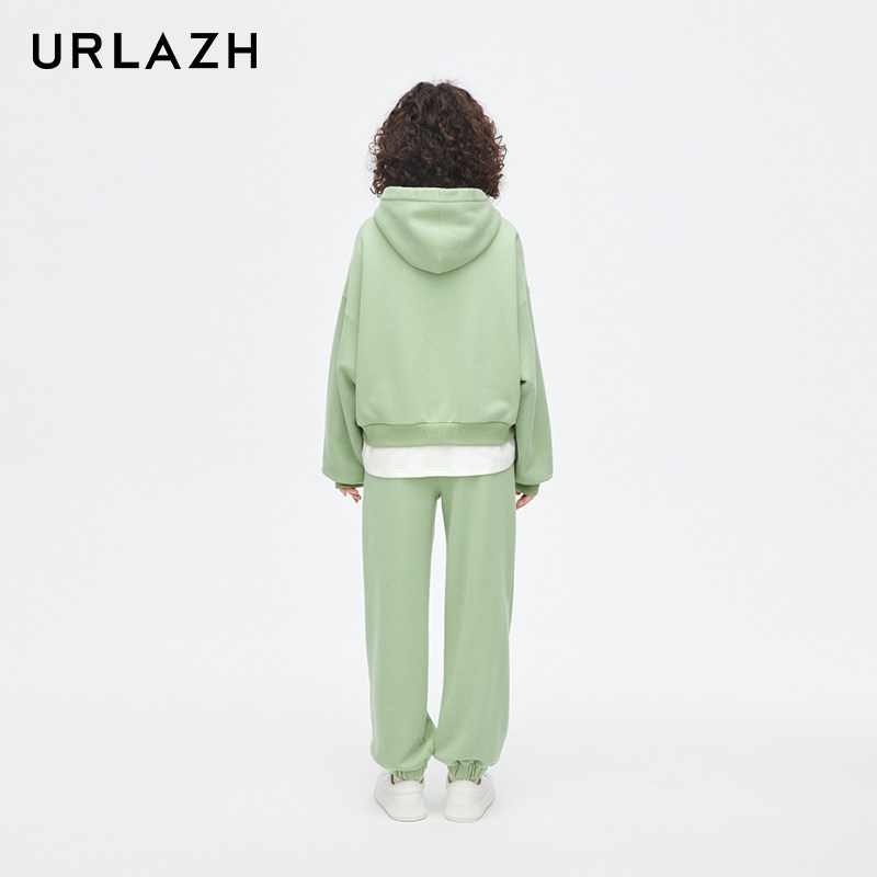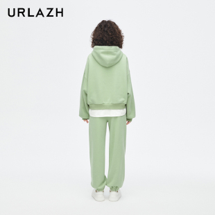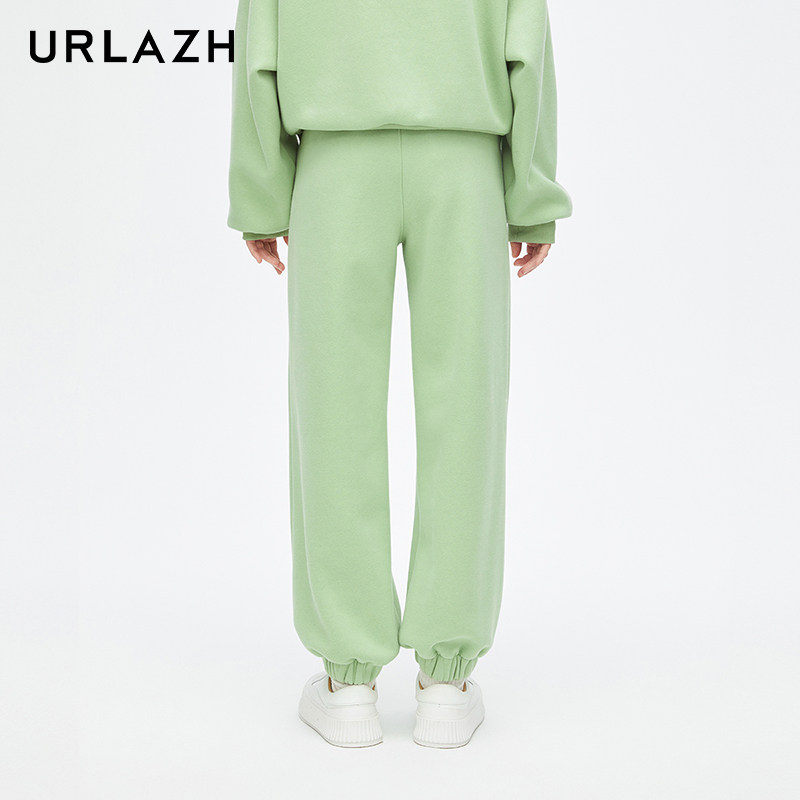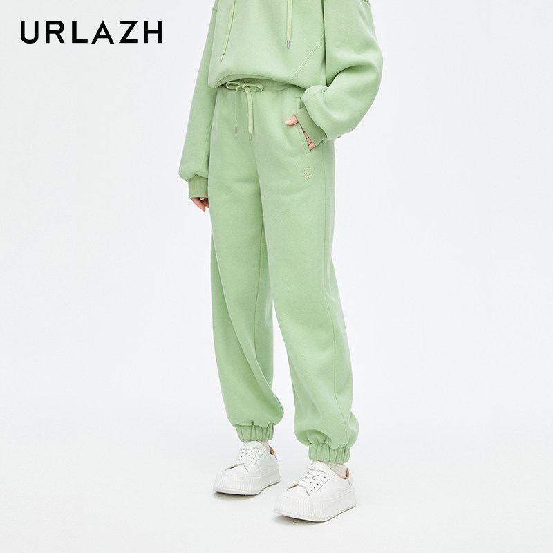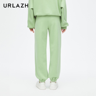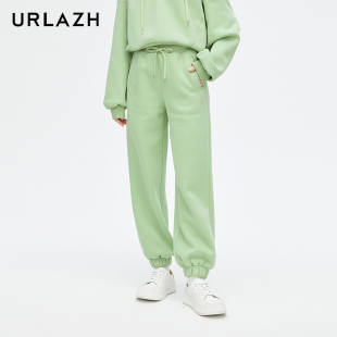 URLAZH有兰新款 女 洋气清新绿色宽松舒适休闲加绒卫裤