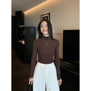 内搭修身 女秋冬长袖 显瘦气质针织上衣 黑色半高领打底衫 pusumede