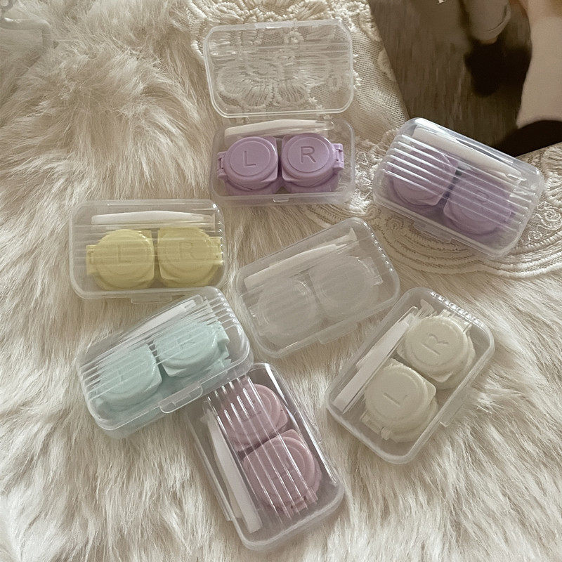 ins透明美瞳盒按压式 扣盖简约便携糖果色小巧隐形眼镜盒子伴侣盒