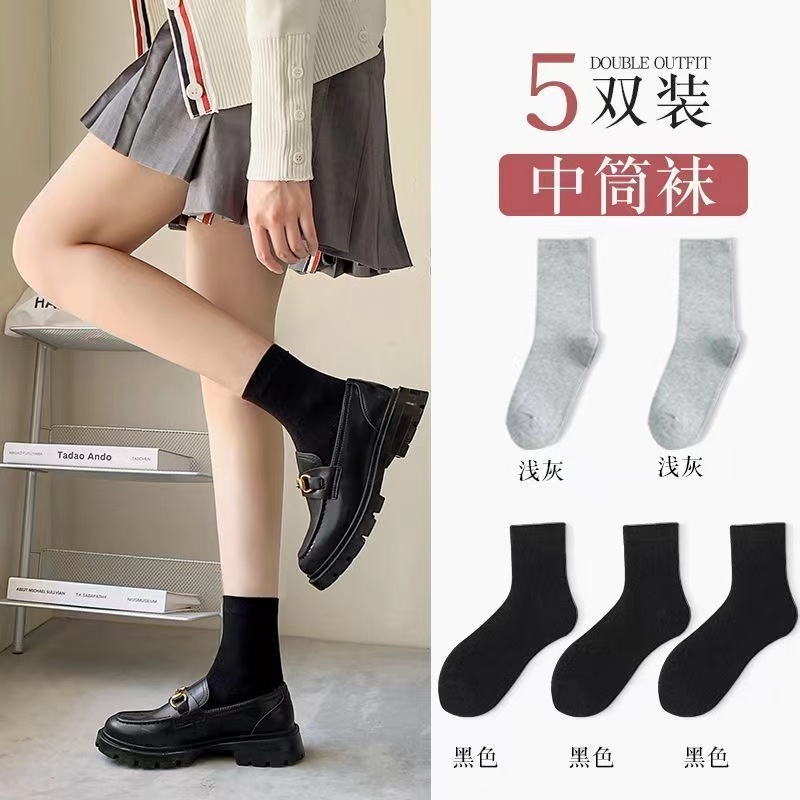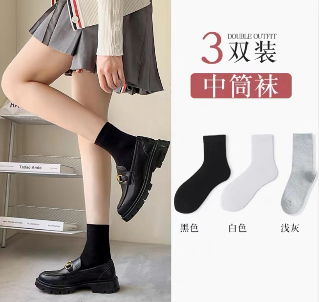 全棉短袜子女春秋季 中短筒袜无骨 纯棉吸汗防臭抗菌透气运动秋冬款