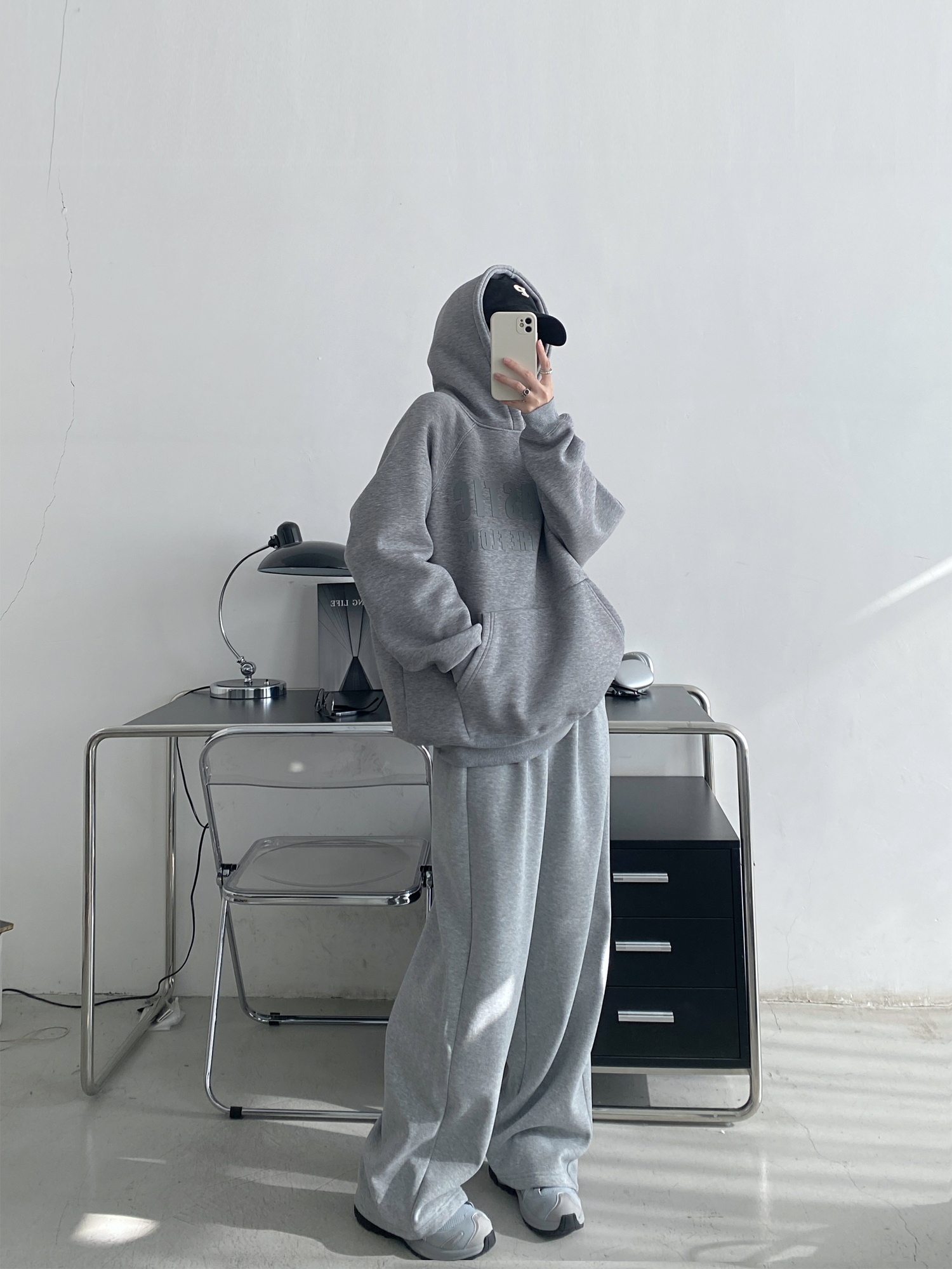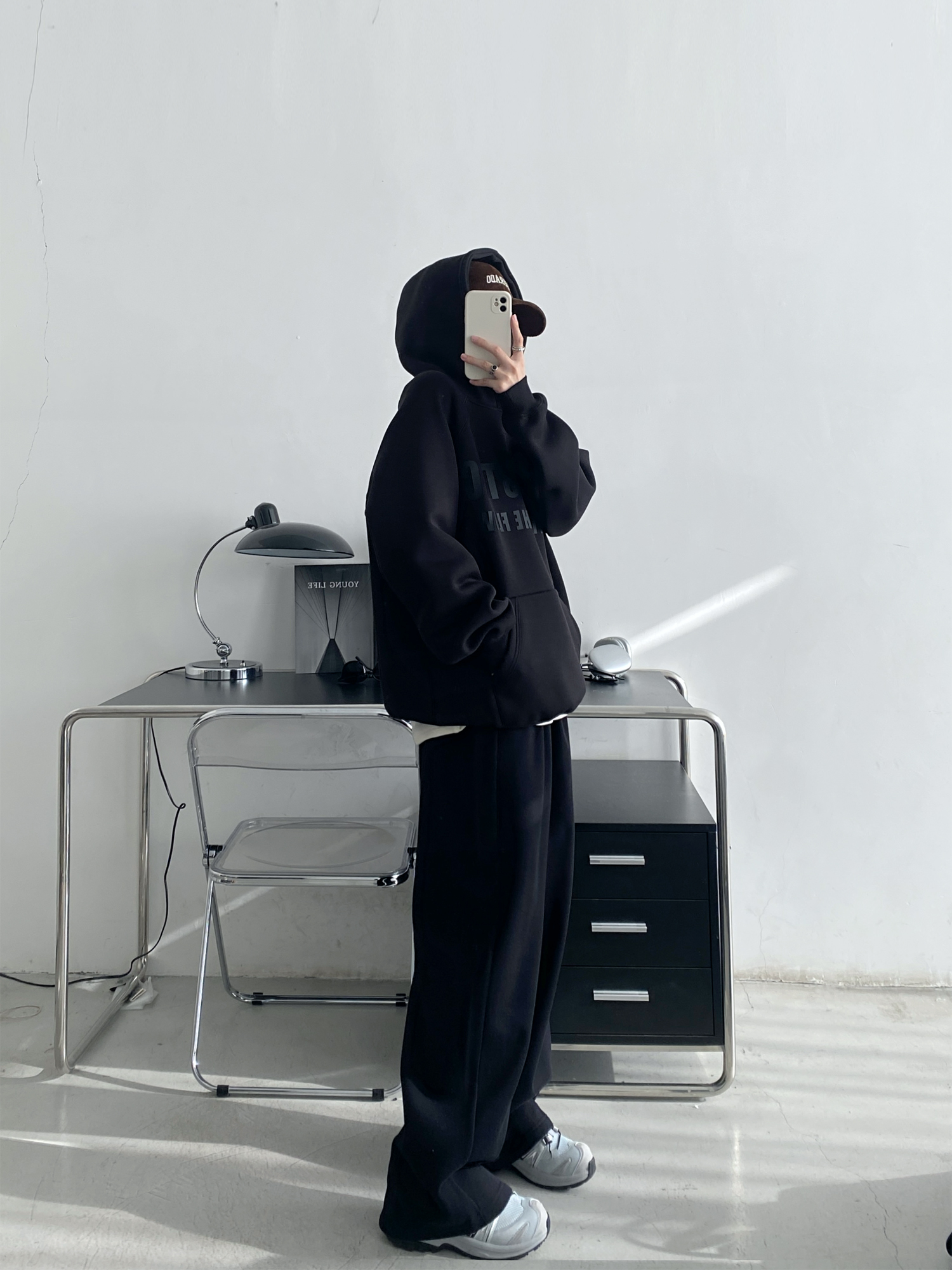 子女冬季 棉感加绒加厚裤 宽松显瘦阔腿休闲运动风卫裤 清仓价