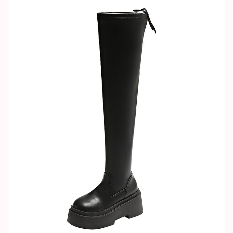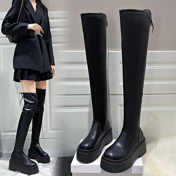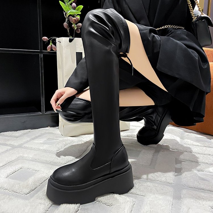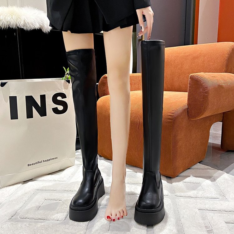 厚底小个子增高弹力瘦瘦靴女长筒过膝长靴粗腿高筒靴大筒围骑士靴