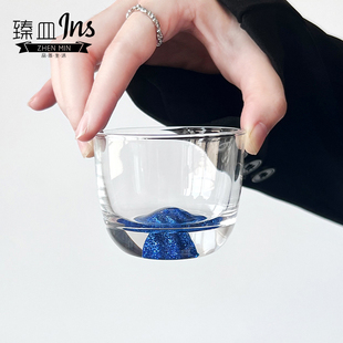 藏金杯观山杯子主人杯功夫茶杯高档茶具磨砂蓝底单杯透明玻璃茶盏