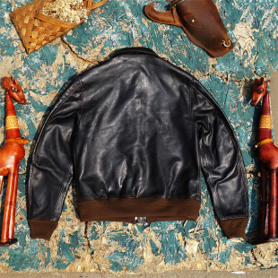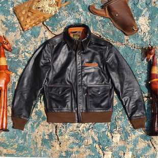 大逃亡水洗擦色做旧美式 A2飞行服 复古茶芯马皮真皮皮衣男式