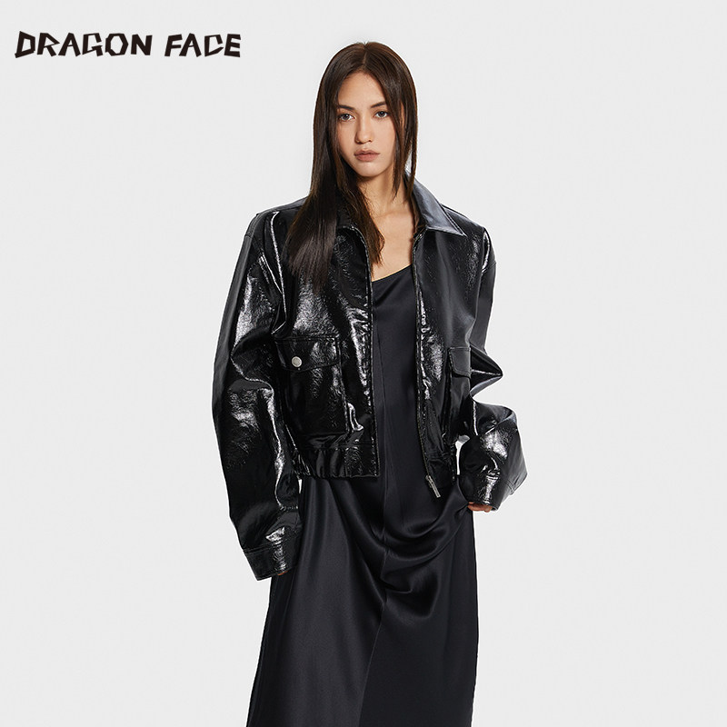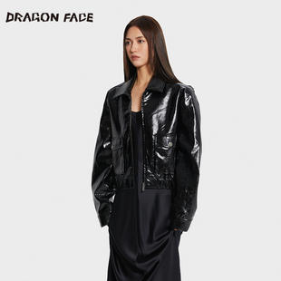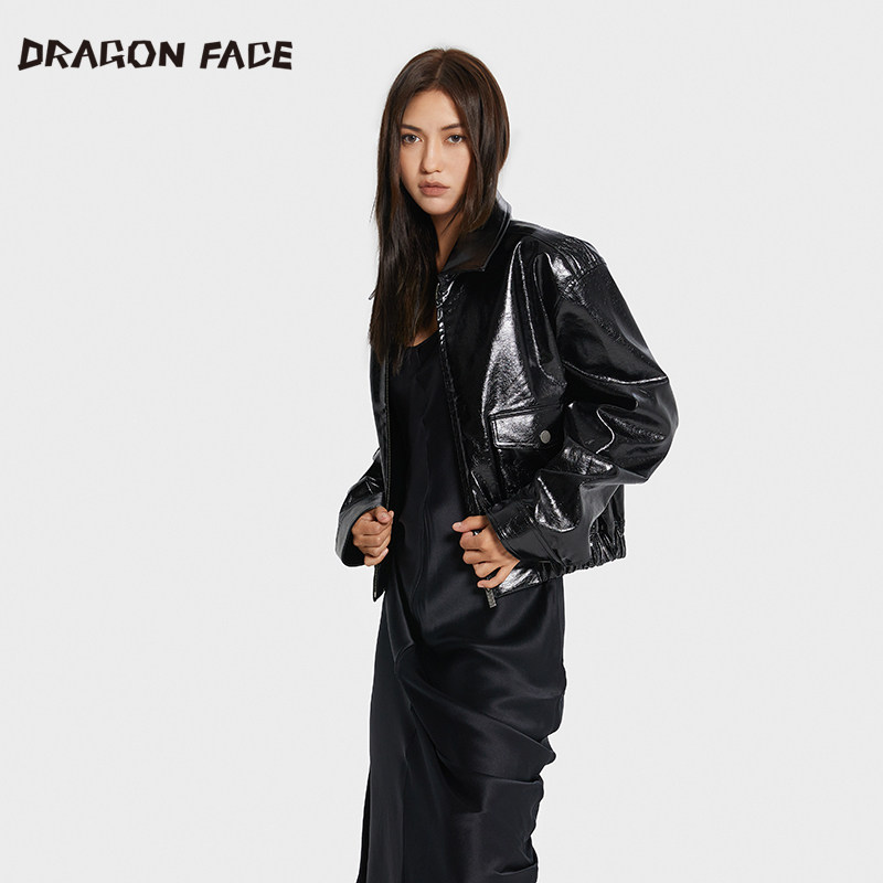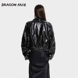 复古夹克亮皮可拆卸毛领夹克 龙脸DRAGONFACE秋季 董雨霏同款