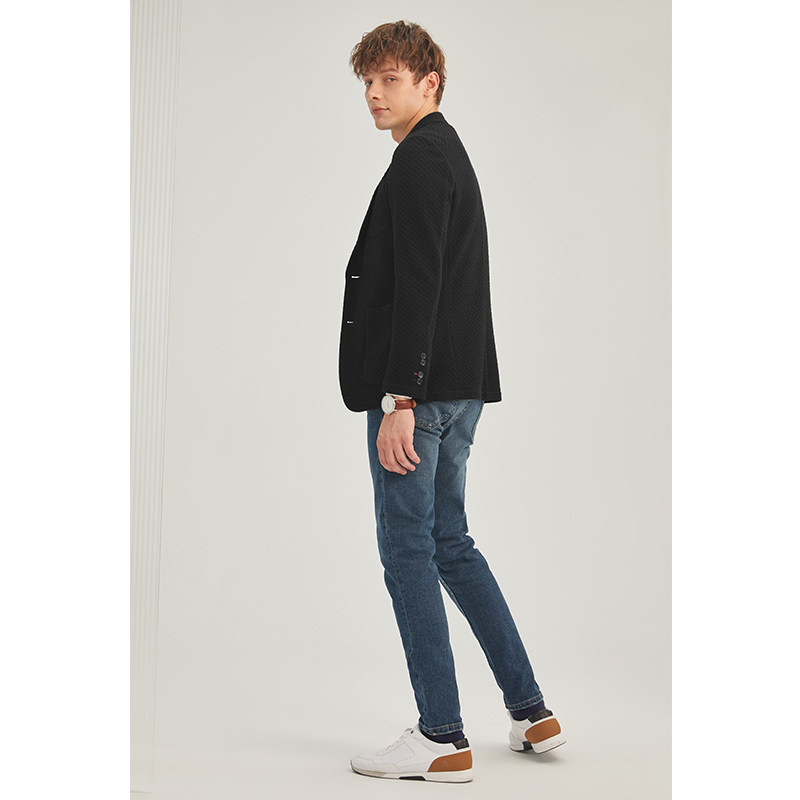 ELI 真丝羊毛混纺平驳领釉面牛角扣休闲西服外套男春秋 杜松