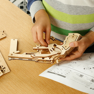 rokr若客木质制皮筋枪雷明顿M870拼装 模型3D立体拼图左轮手枪玩具