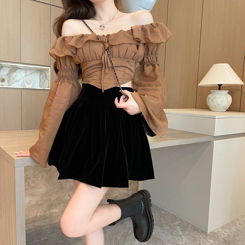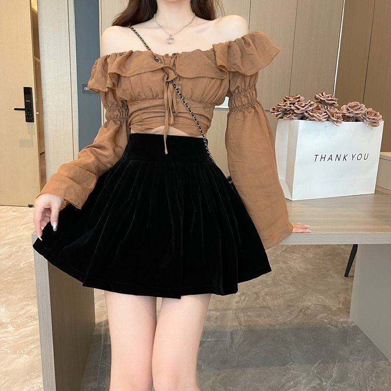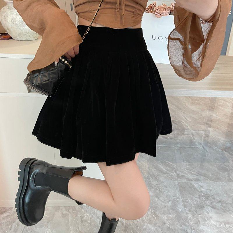 丝绒a字蓬蓬裙大码 防走光短裙 适合梨型遮胯百褶半身裙女秋冬韩版