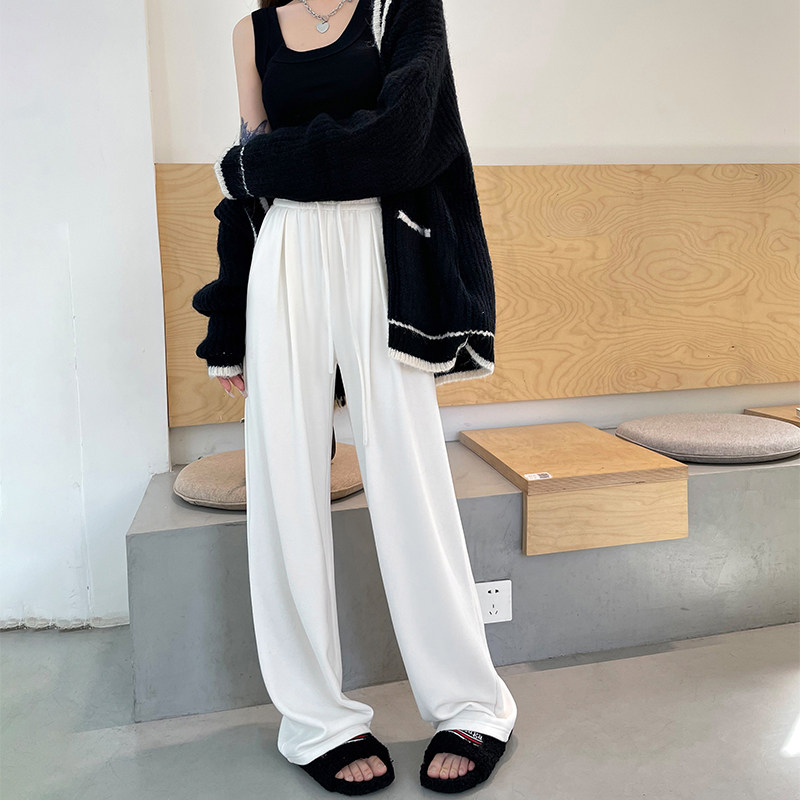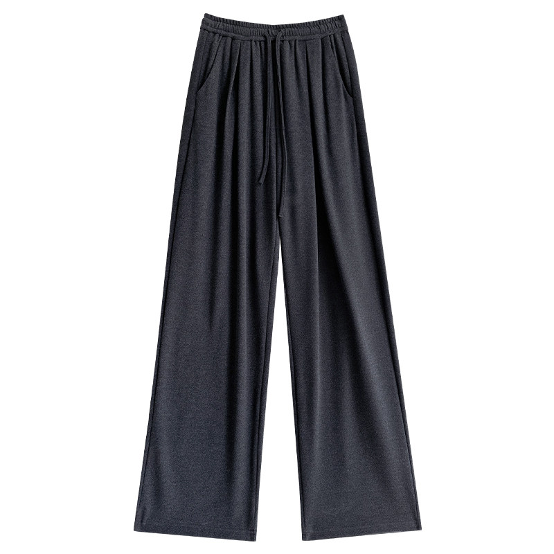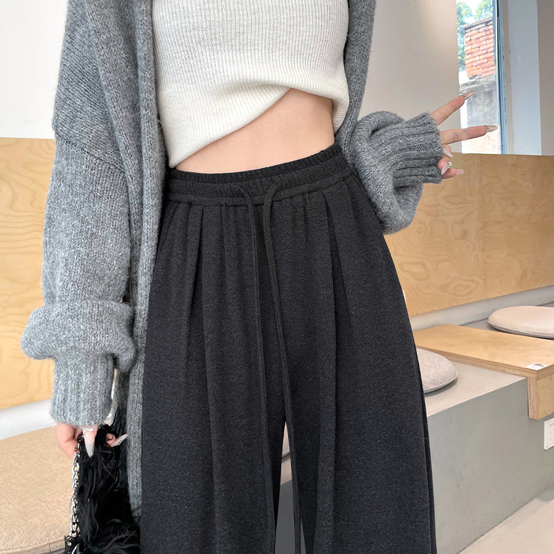 子 休闲慵懒拖地云朵裤 深灰色阔腿裤 女秋冬加绒高腰垂感直筒糯米裤