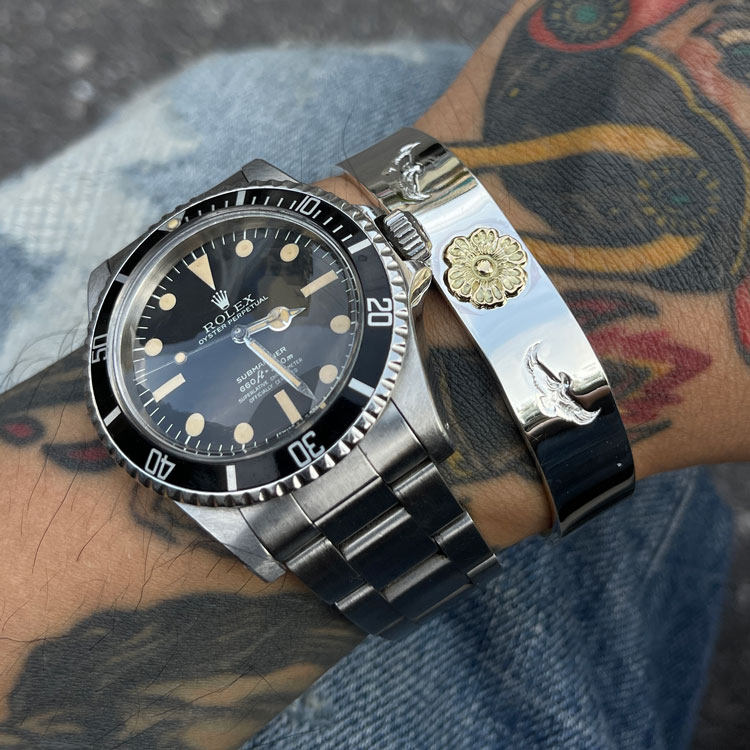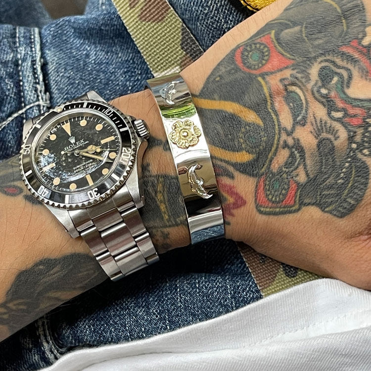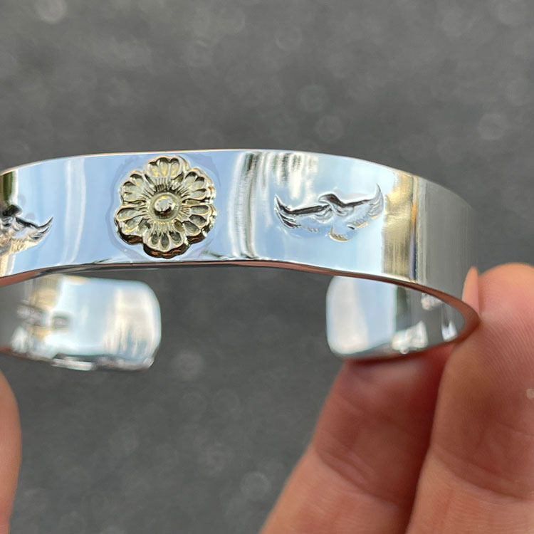 Dear 日本手打18K金双老鹰刻印蔷薇花平打银手镯 Blossom特殊限定