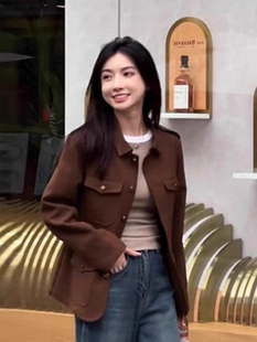 老钱风高级感麂皮绒宽松复古无扣无领西装 INSOMNIA失眠者 秋冬季