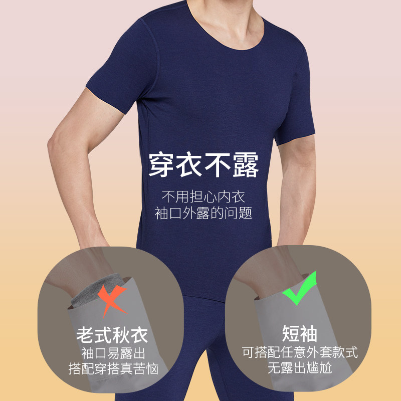 上衣男士 秋衣保暖内衣内搭打底衫 中袖 冬季 t恤加厚半袖 加绒七分袖