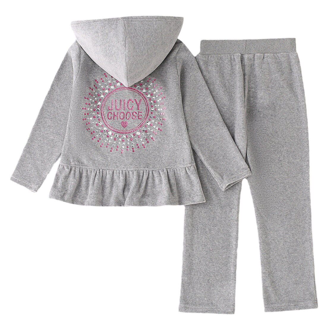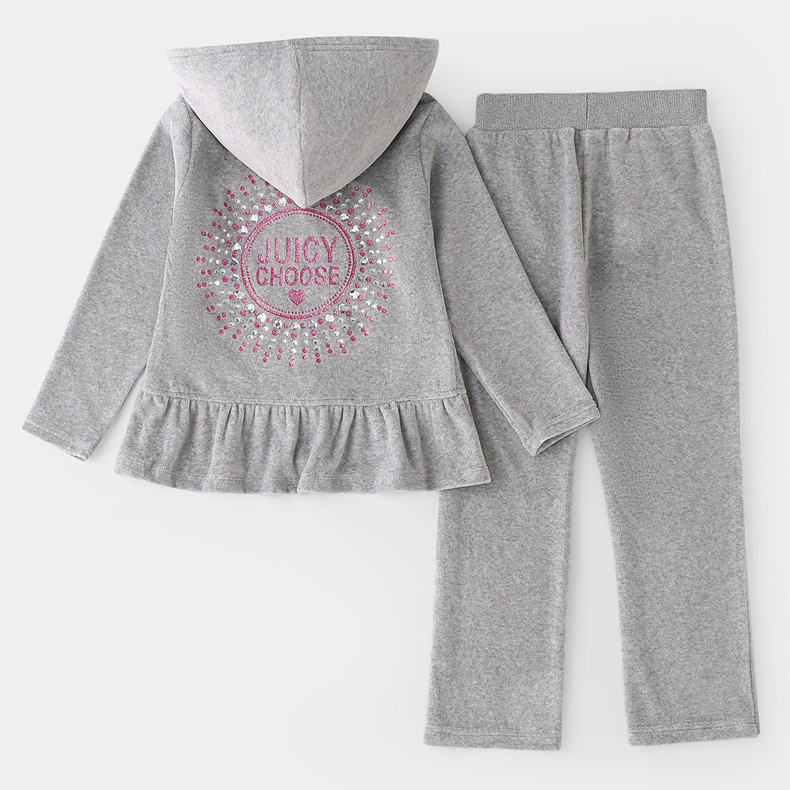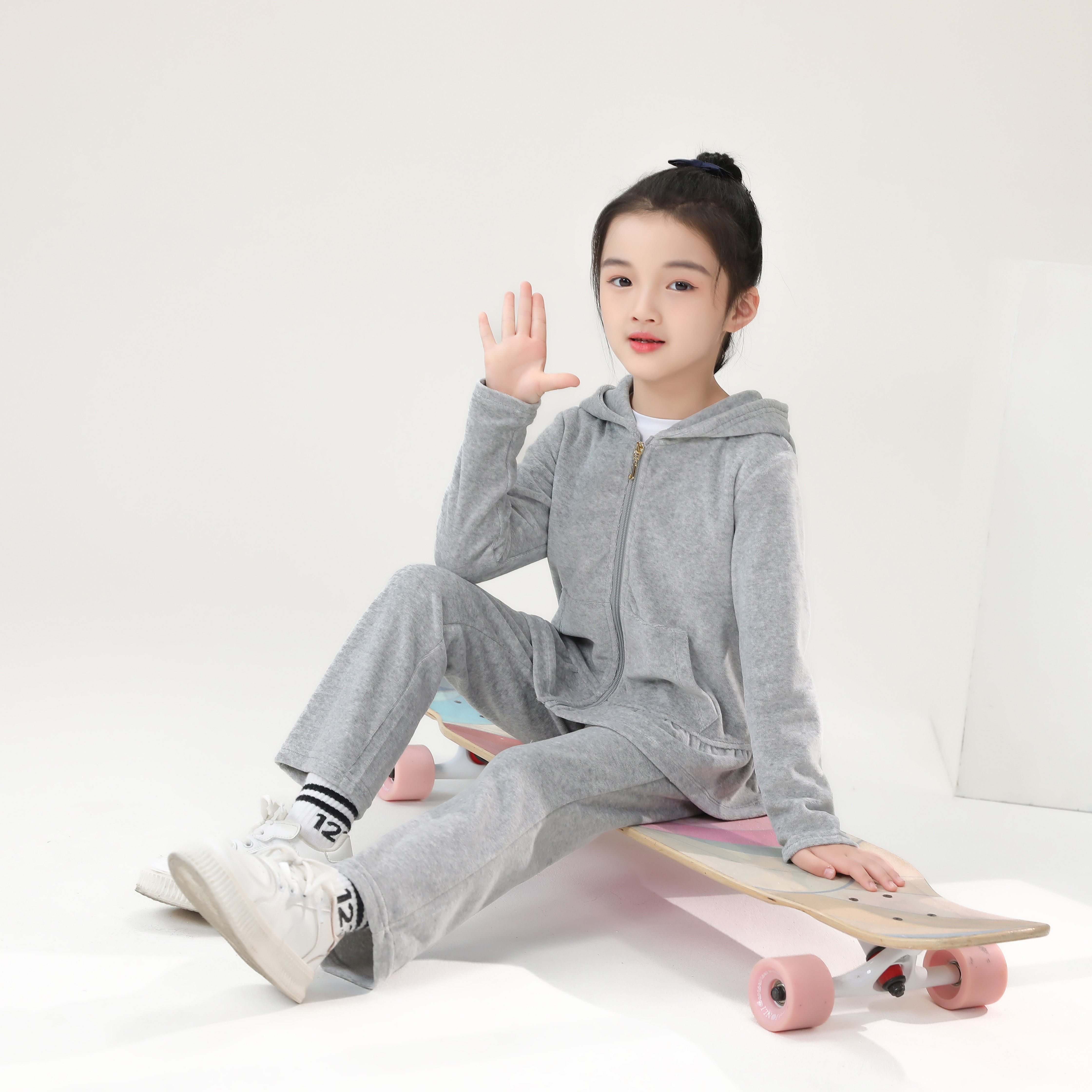 时髦连帽灰色运动服 洋气天鹅绒套装 春秋新款 女大童女孩时尚