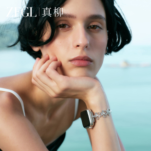 ZEGL设计师适用苹果iwatchS11手表表带春夏芭蕾风花朵SE手表链银色applewatch手链女轻奢小众精致腕带可调节