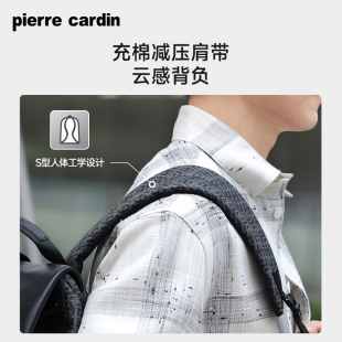 皮尔卡丹男士 通勤旅行包男商务PVC老花电脑背包 双肩包大容量时尚